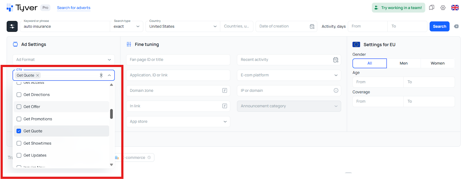 The Get Quote CTA filter is no less precise but allows you to keep a larger number of valuable and relevant creatives in the output.